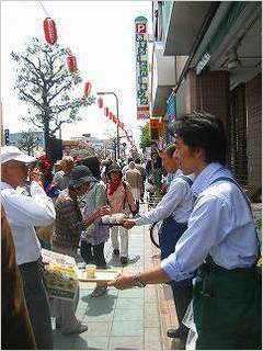 道行く人々へ、せっせとお渡し。