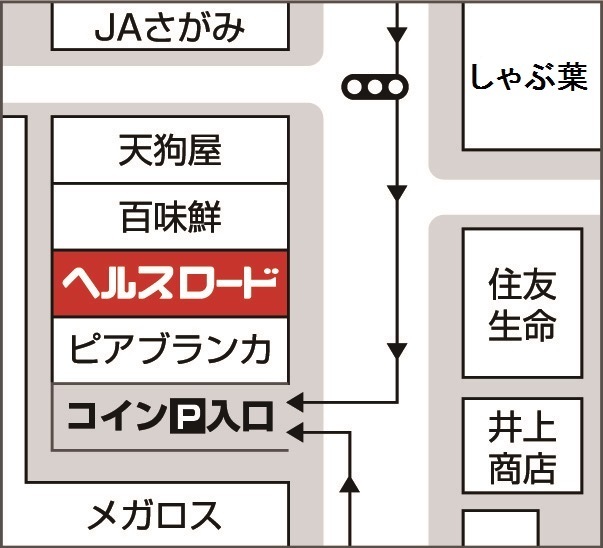 大和警察署を目指していただき、大和駅から見て大和警察署並び2軒手前のビルの1階です。(メガロスの1軒手前のビルです。)